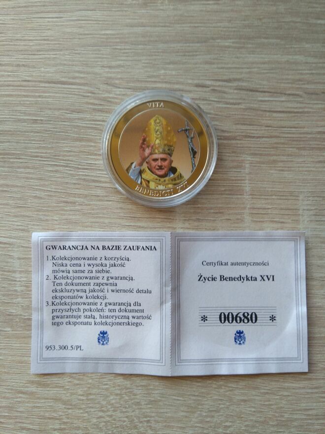 Medal okolicznościowy życie Benedykta XVI. Medal wykonany w całości ze srebra. Stan nowy. Cena 250 zł. Odbiór osobisty lub wysyłka + 20 zł.Tel. 887 - pokaż numer telefonu -