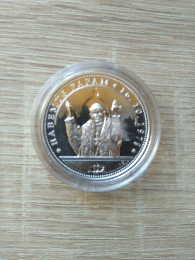 Medal okolicznościowy z wizerunkiem J. P. 2 Habemus Papam upamiętniający wybór papieża Jana Pawła II. Na medalu widnieje data 16.10.1978, czyli dzień wyboru Karola Wojtyły na papieża. Wykonany ze srebra, 1 uncja. Cena 250 zł. Odbiór osobisty lub wysyłka + 20 zł.Tel. 887 - pokaż numer telefonu -