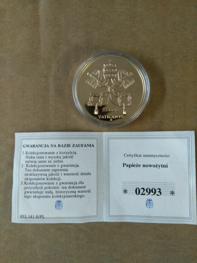 Medal okolicznościowy z serii Papieże nowożytni przedstawiający Jana Pawła 2. Medal wykonany z miedzi, niklu i pozłacany. Stan nowy. Cena 150 zł. Odbiór osobisty lub wysyłka + 20 zł.Tel. 8+8+7+ 0+8+0+ 7+7+5