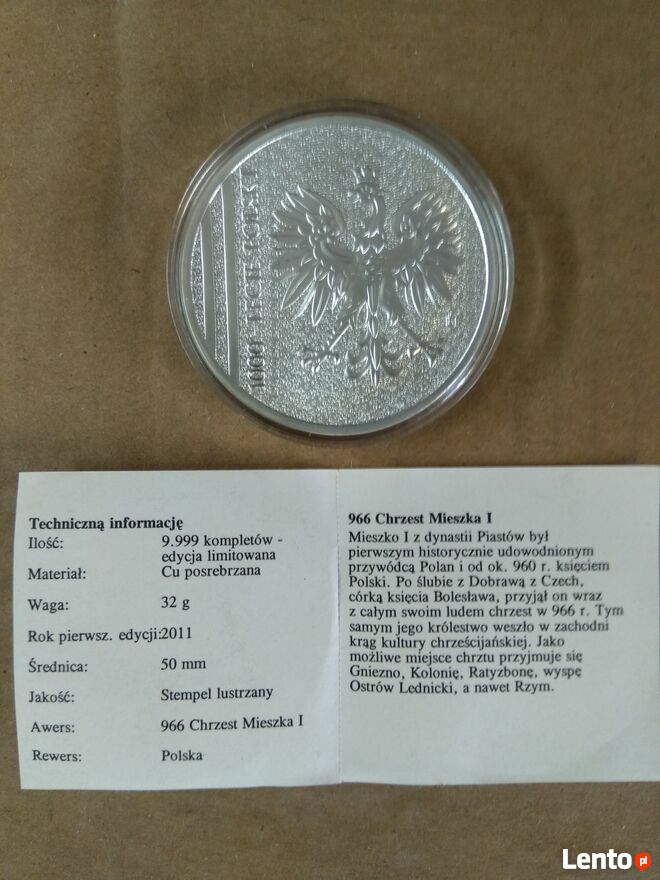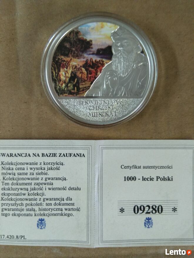 Medal okolicznościowy upamiętniający chrzest Mieszka 1.Medal wykonany z miedzi i posrebrzany. Stan nowy. Cena 100 zł. Odbiór osobisty lub wysyłka + 20 zł. Tel. 8+8+7+ 0+8+0+ 7+7+5Robert