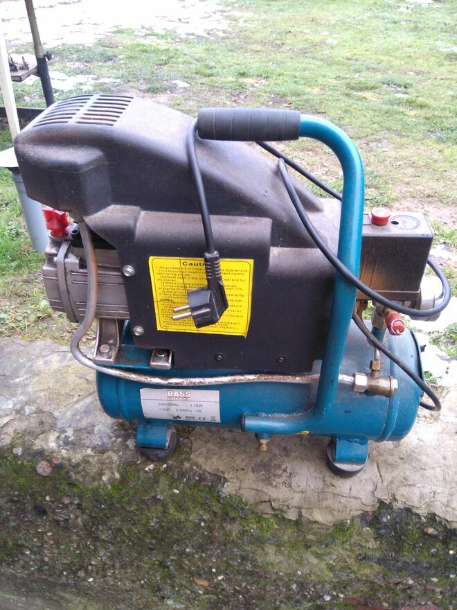 Używany kompresor olejowy, sprężarka, zbiornik 10 l. Sprzedaję jako uszkodzony. Uszkodzenie polega na tym że silnik czasami nie kręci tylko buczy, trzeba wtedy śrubokrętem obrócić łopatki wentylatora i zaczyna kręcić. Cena 250 zł. Odbiór osobisty lub wysyłka + 50 zł.Tel. 887 - pokaż numer telefonu -